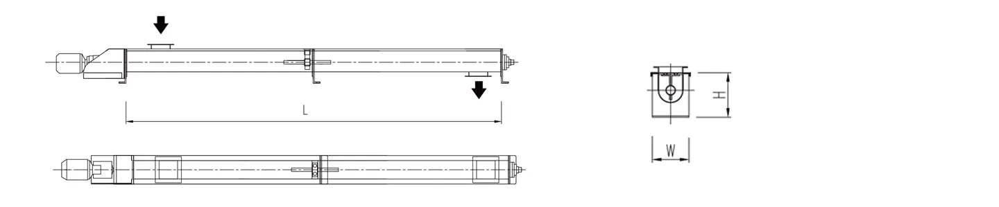 | Model | Screw Dia. (mm) | Pitch (mm) | Speed (rpm) | Capacity (m³/h) | Outline size W×H×L(mm) |