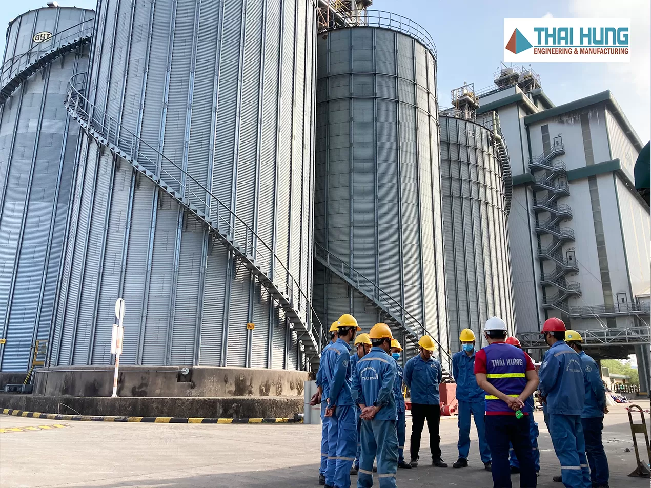 - Bảo Trì và Bảo Dưỡng Định Kỳ (Maintenance & Inspection): Hệ thống silo được kiểm tra và bảo trì định kỳ, bao gồm van, động cơ, băng tải và cảm biến nhiệt độ, độ ẩm. Việc bảo trì định kỳ giúp phát hiện sớm các dấu hiệu hao mòn, ngăn ngừa gián đoạn sản xuất và tiết kiệm chi phí sửa chữa. Hệ thống silo của Thái Hưng đảm bảo quy trình vận hành khép kín, giảm thiểu thất thoát nguyên liệu và tối ưu hóa hiệu suất hoạt động. Với công nghệ tự động hóa hiện đại, hệ thống mang lại sự an tâm về chất lượng, an toàn và hiệu quả trong quản lý kho bãi.