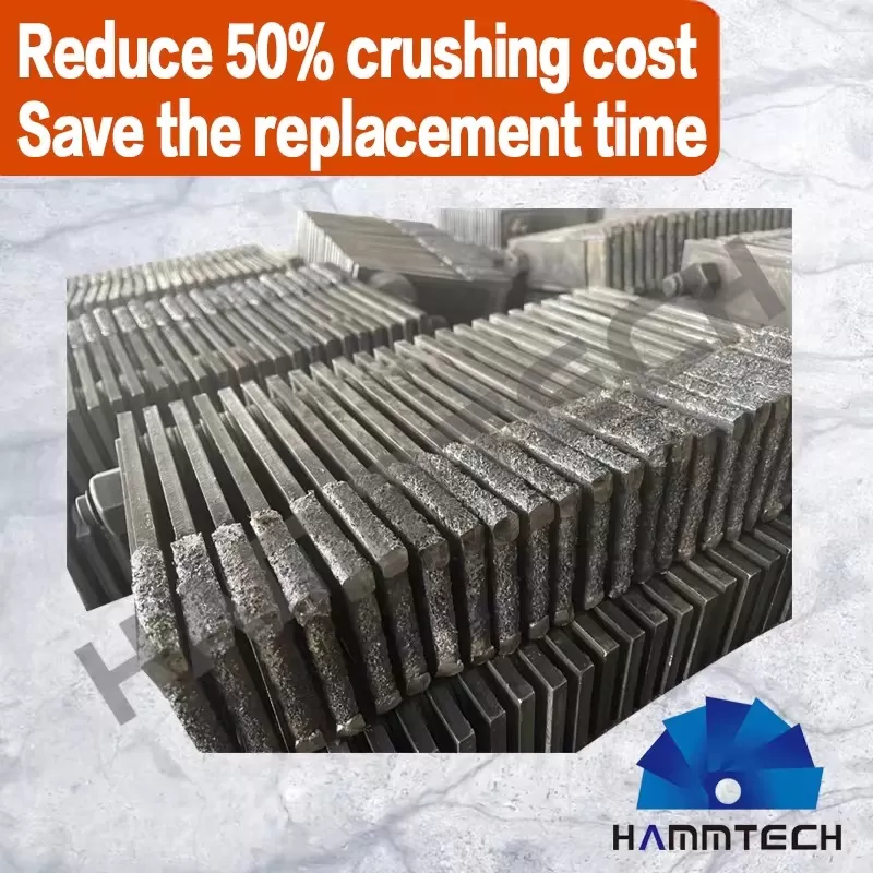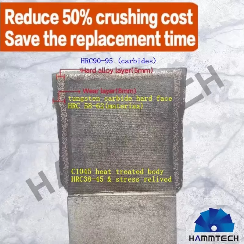 Single-layer: the height of tungsten carbide layer reaches 5mm the total wear-resistant height reaches 8mm. Its service life is more longer. It can reduce crushing cost and save the replacement time.